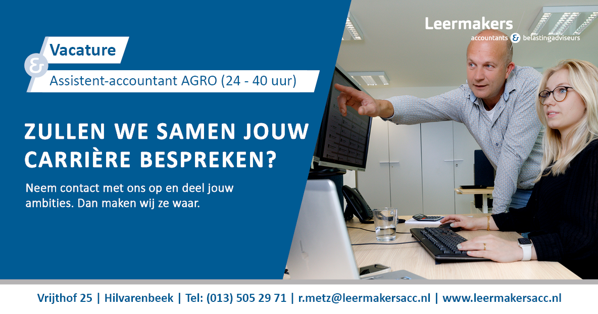 Ben jij een afgestudeerde RA- of AA-accountant met ambitie en interesse in de agrarische sector en ben je toe aan een volgende stap in jouw carrière? Dan zijn wij op zoek naar jou!