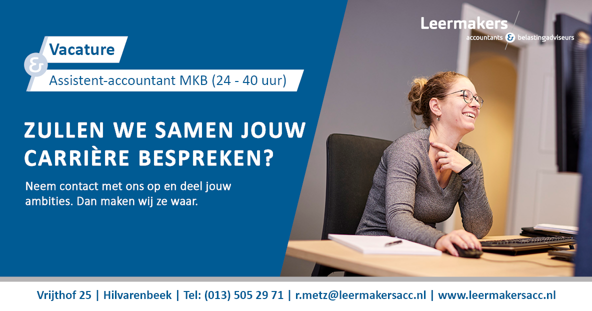 We kijken ernaar uit om jouw sollicitatie met CV te ontvangen en de mogelijkheden te bespreken. Solliciteren kan via r.metz@leermakersacc.nl