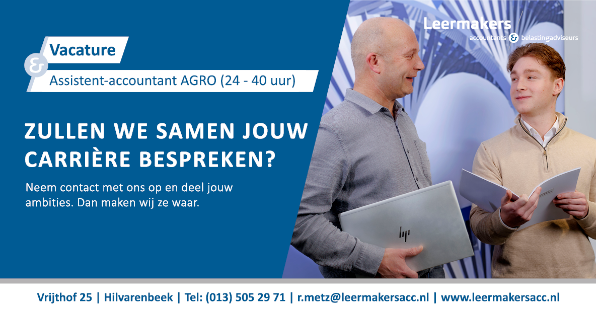 Ben jij een afgestudeerde RA- of AA-accountant met ambitie en interesse in de agrarische sector en ben je toe aan een volgende stap in jouw carrière? Dan zijn wij op zoek naar jou!