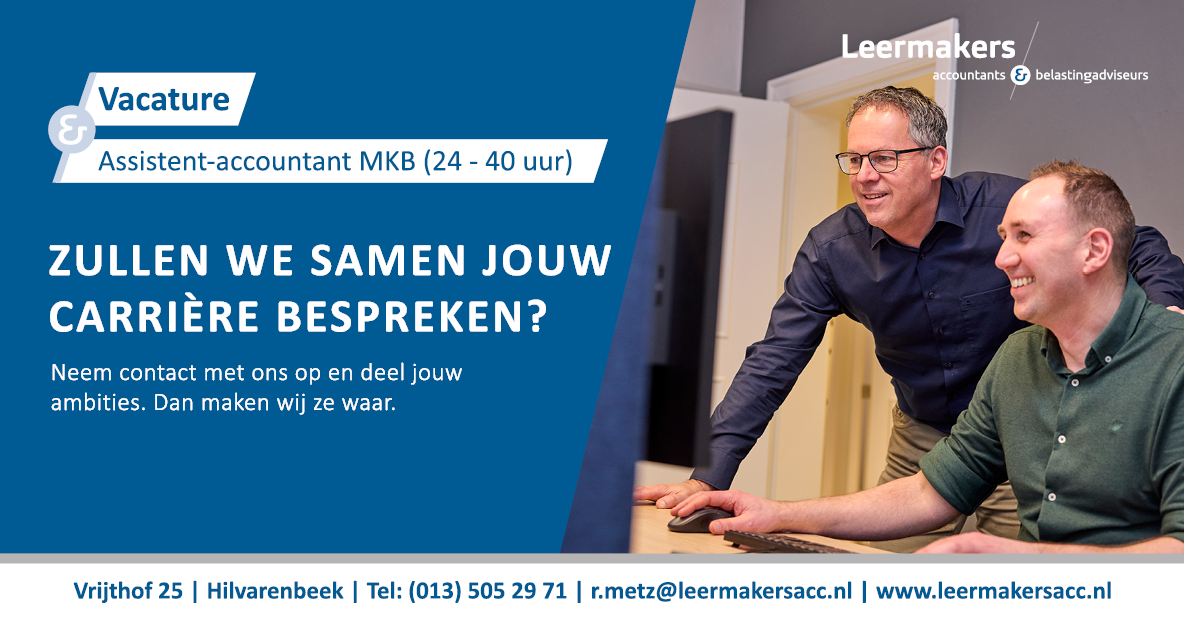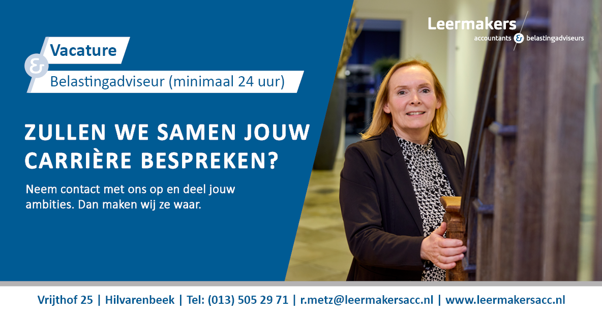 We kijken ernaar uit om jouw sollicitatie met CV te ontvangen en de mogelijkheden te bespreken. Solliciteren kan via r.metz@leermakersacc.nl