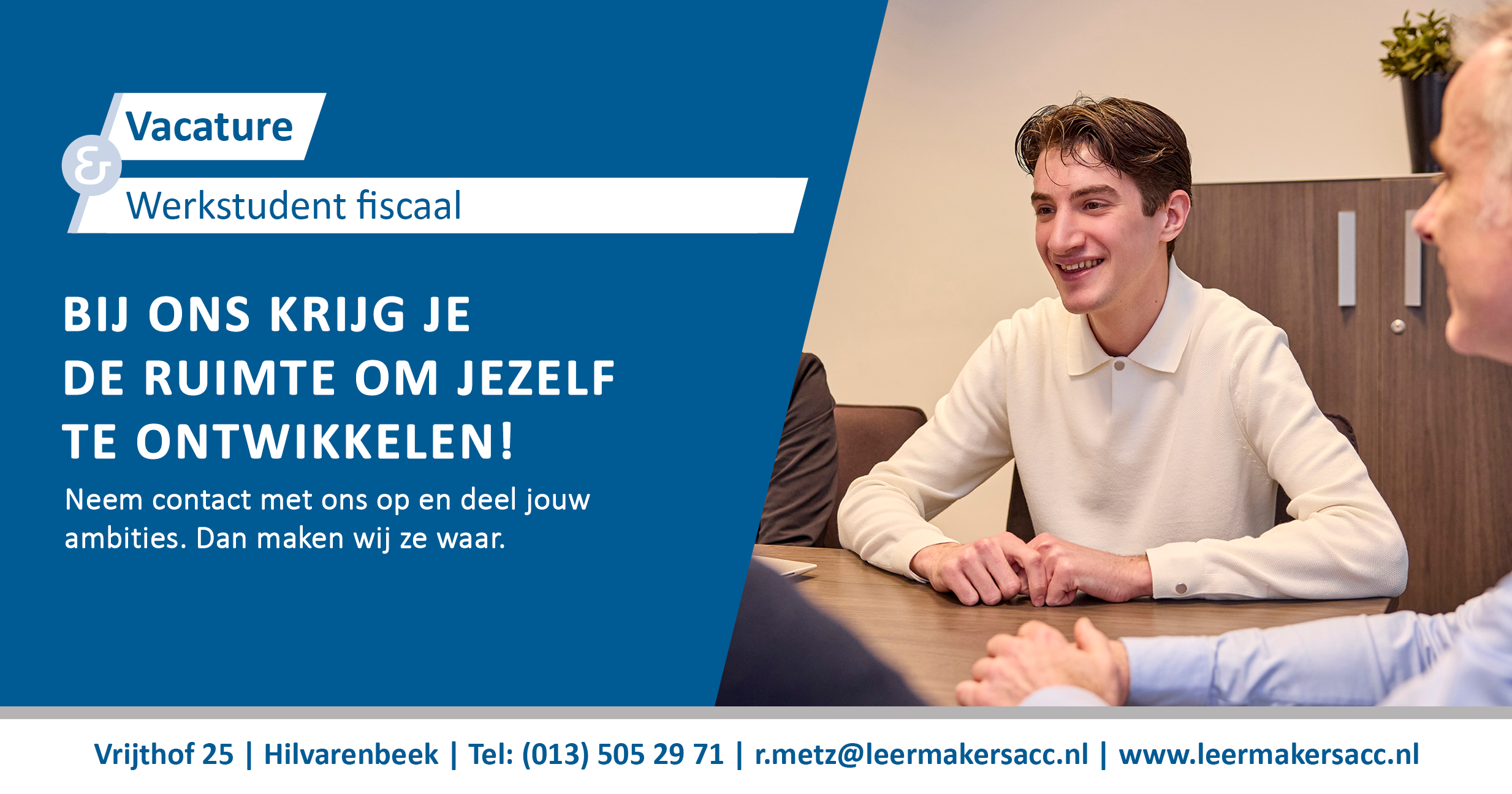 Dus: volg jij een HBO of wo-opleiding of fiscaal gebied en ben je een gemotiveerde student die naast de studie praktijkervaring wil opdoen? Werk jij graag aan uitdagende vraagstukken en wil je jezelf zowel professioneel als persoonlijk ontwikkelen? Dan hebben wij de perfecte plek voor jou! Stuur een berichtje of bel naar 06 12096703 en wie weet verwelkomen we jou binnenkort bij ons kantoor.